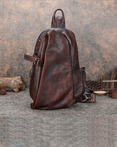Cool Men's Leather Sling Bag Sling Pack Leather Sling Backpacks For Men