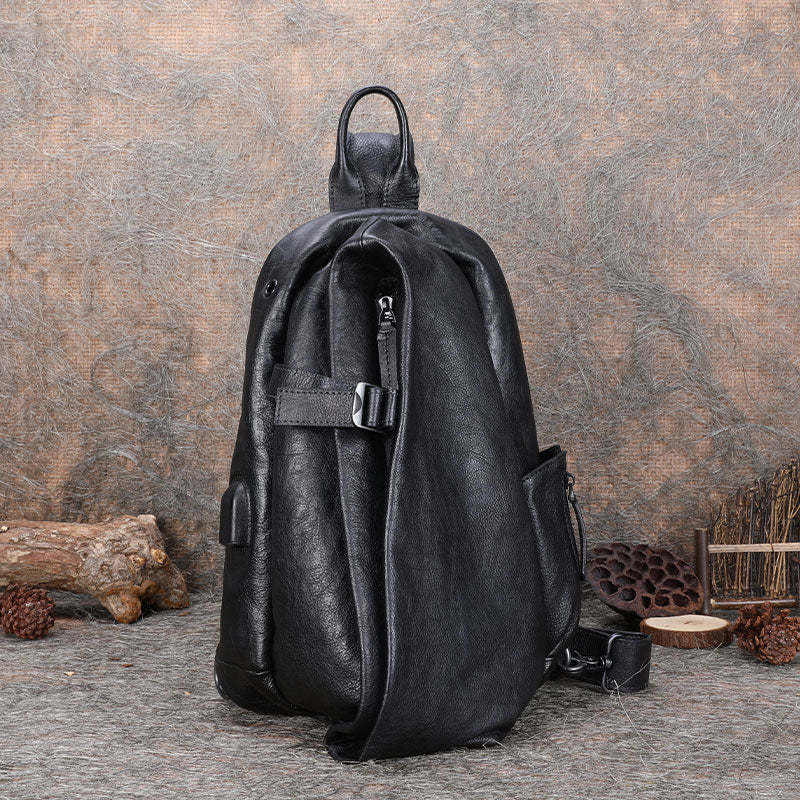 Style: Cool Men's Leather Sling Bag Sling Pack Leather Sling Backpack For Men