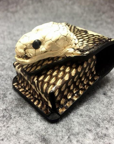 Design: Cool Mens Leather Snake Zippo Lighter Cases with Loop Zippo lighter Holder with clips