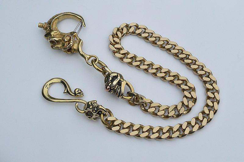 Design: Badass Men's Gold Brass Skull Biker Wallet Chain Key Chain Pants Chain For Men
