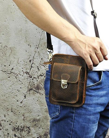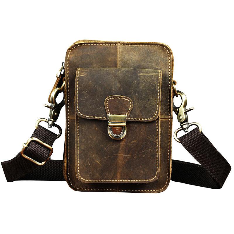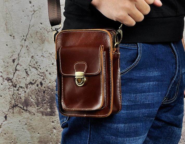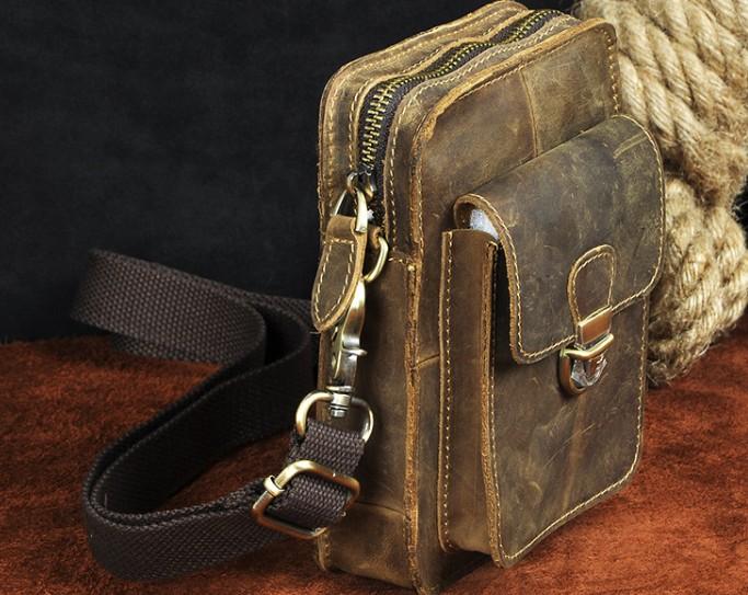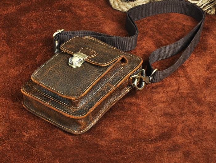 Design: Cool Leather Mens Drop Leg Bag Belt Pouch Waist Bag Shoulder Bag for Men