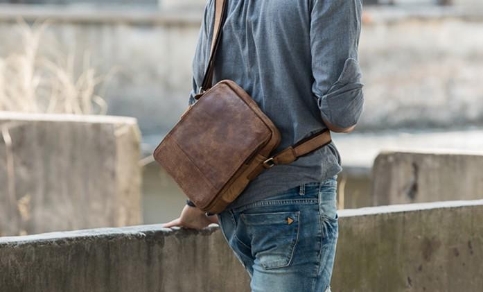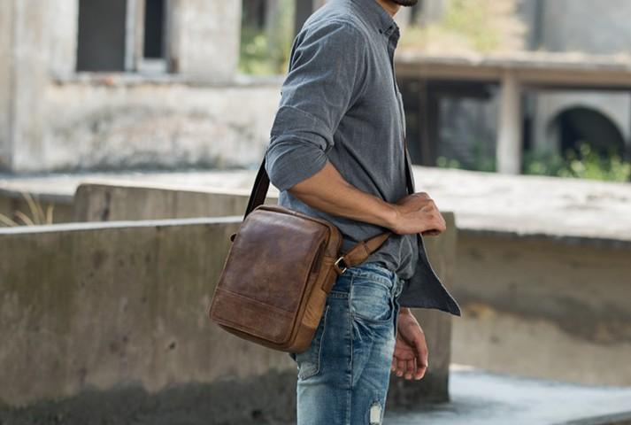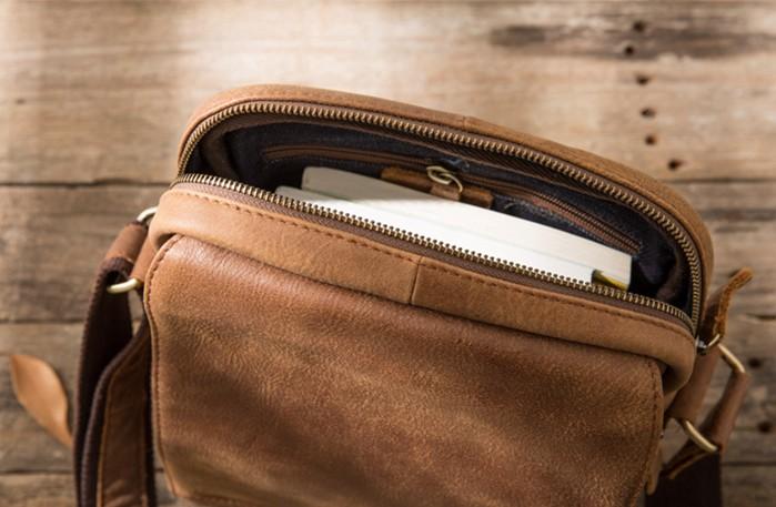 Design: Cool Small Mens Leather Camel Bag Messenger Bags Shoulder Bags for Men