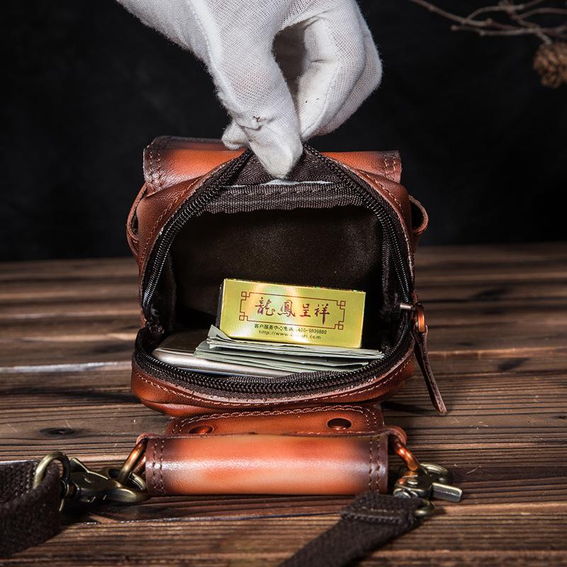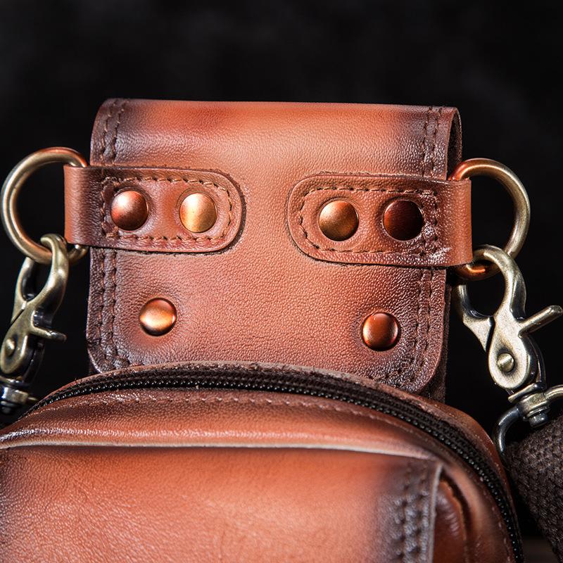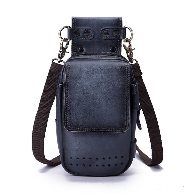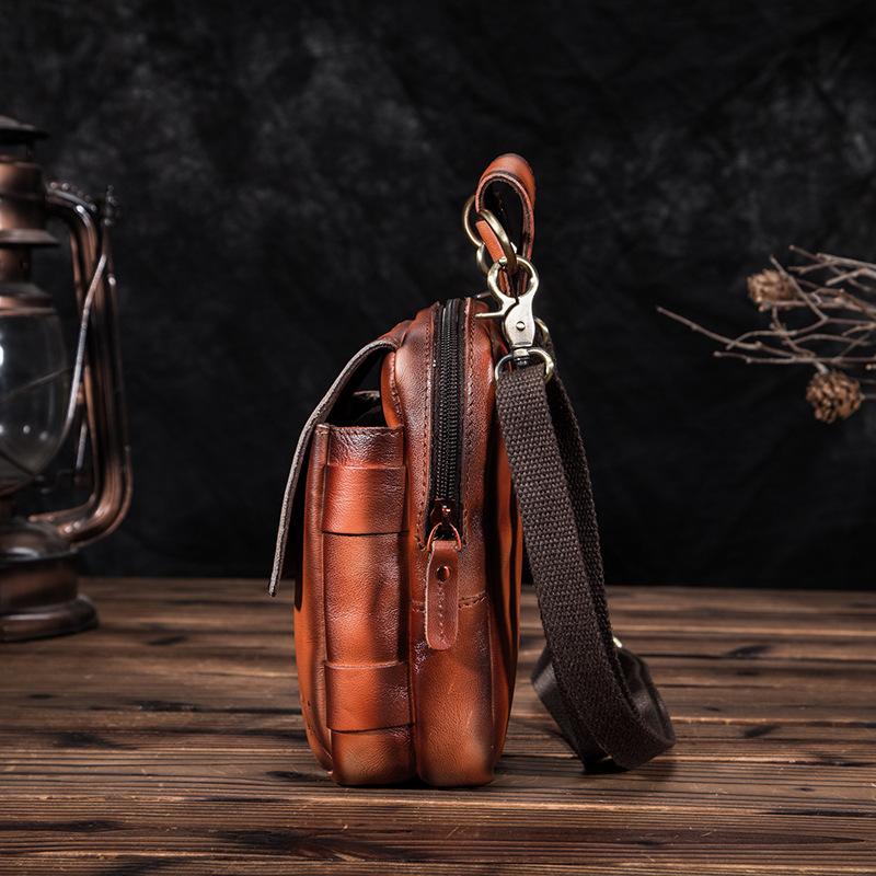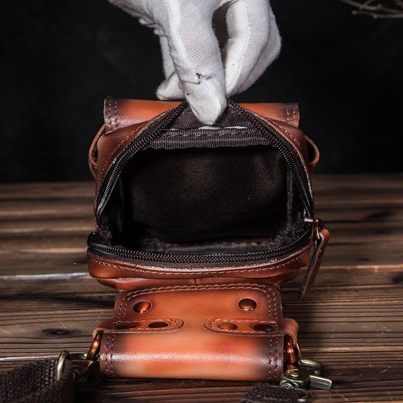 Design: Cool Orange Leather Men's Sling Bag One Shoulder Backpack Blue Sling Crossbody Pack For Men