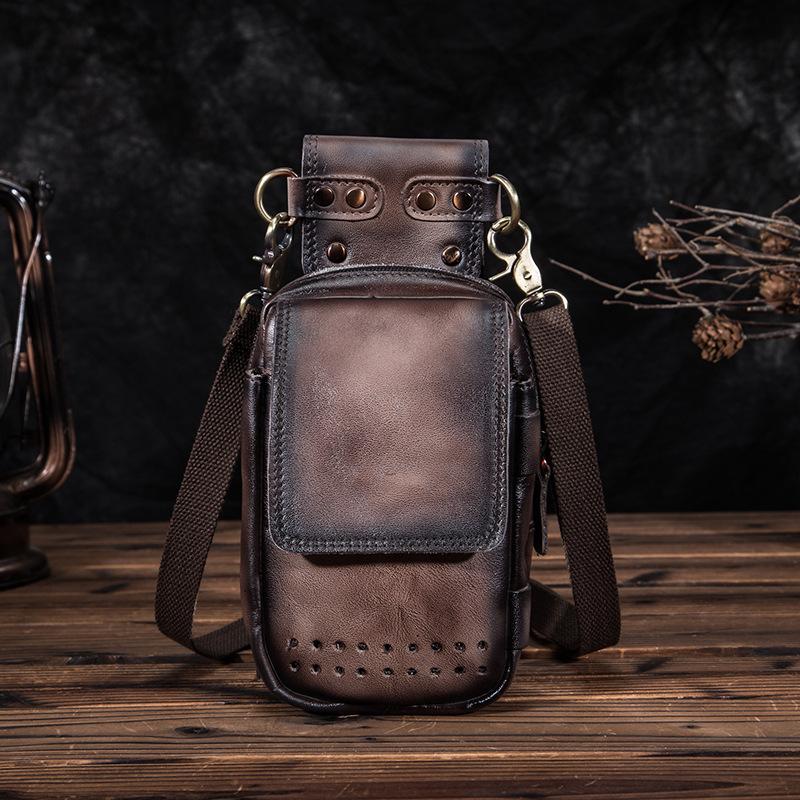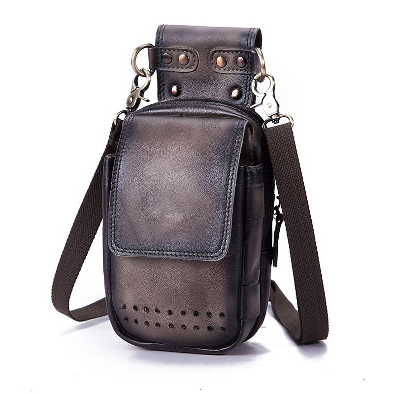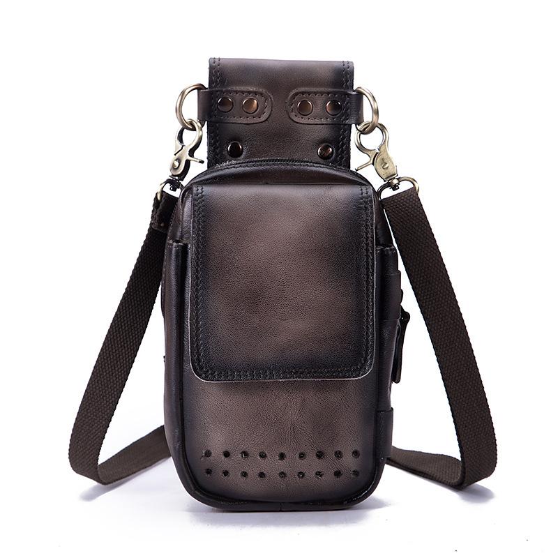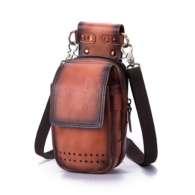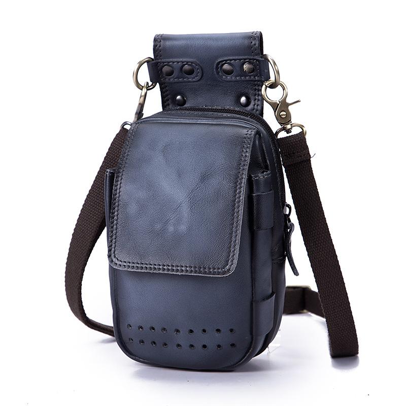 Design: Cool Orange Leather Men's Sling Bag One Shoulder Backpack Blue Sling Crossbody Pack For Men