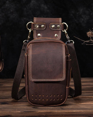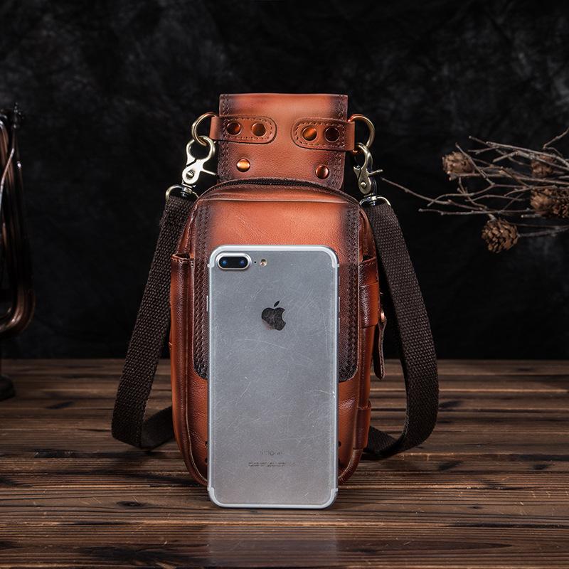 Design: Cool Orange Leather Men's Sling Bag One Shoulder Backpack Blue Sling Crossbody Pack For MenOverview: