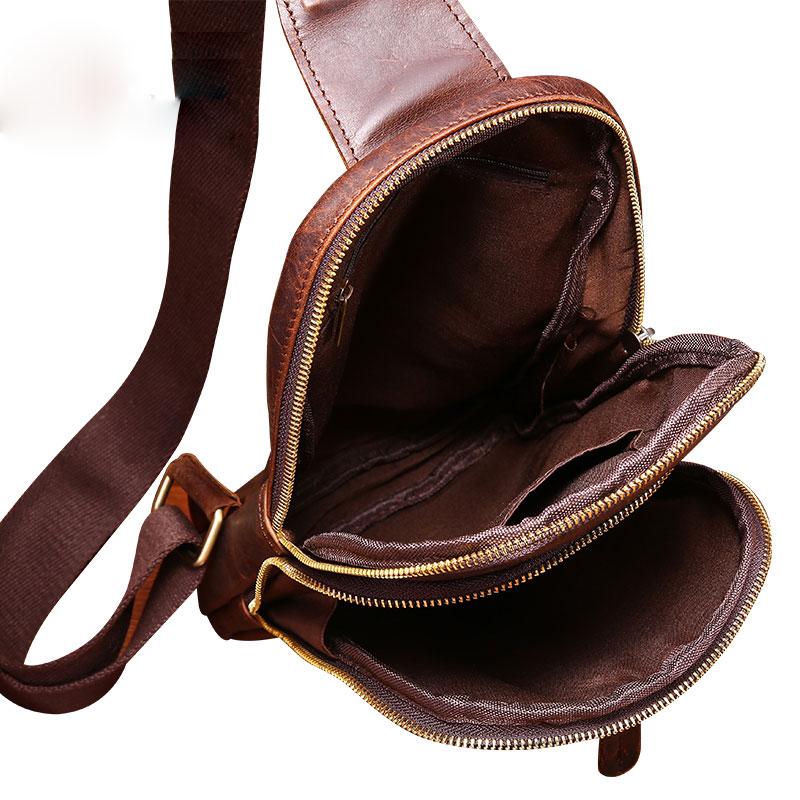 Style: Genuine Leather Cool Chest Bag Sling Bag Crossbody Bag Travel Bag Hiking Bag For Mens