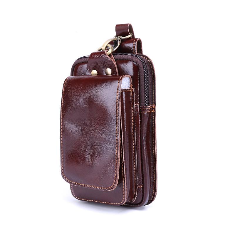 Style: Cool Red Brown Oil Waxed Leather Mens Belt Case Belt Pouch Mini Waist Pouch Belt Bags For Men