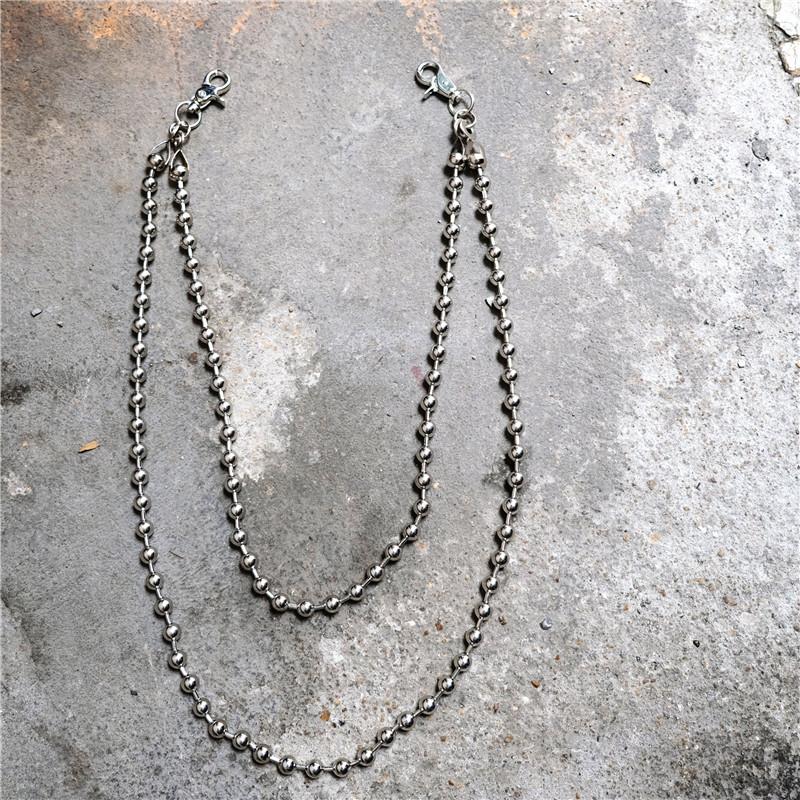 Style: Cool Silver Mens Womens Beaded Pants Chain Long Double Wallet Chain For Men