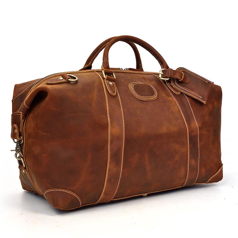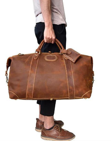 Design: Cool Retro Dark Brown and Brown Leather Men Barrel Overnight Bags Travel Bags Weekender Bags For Men