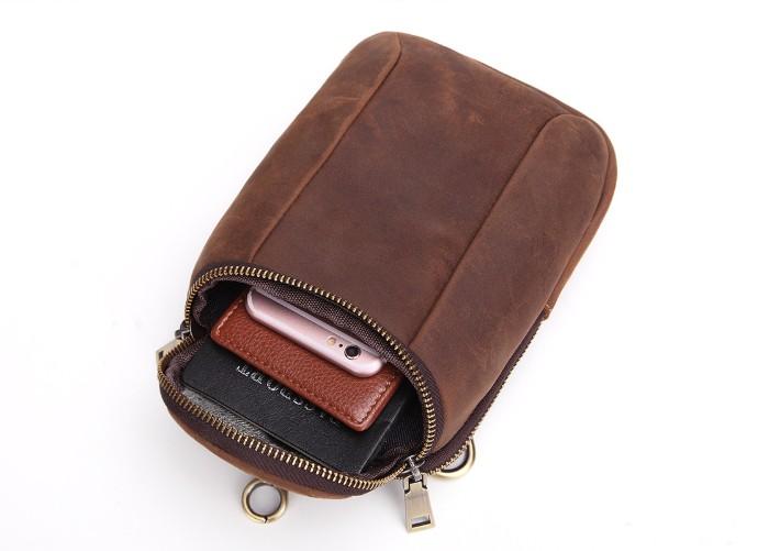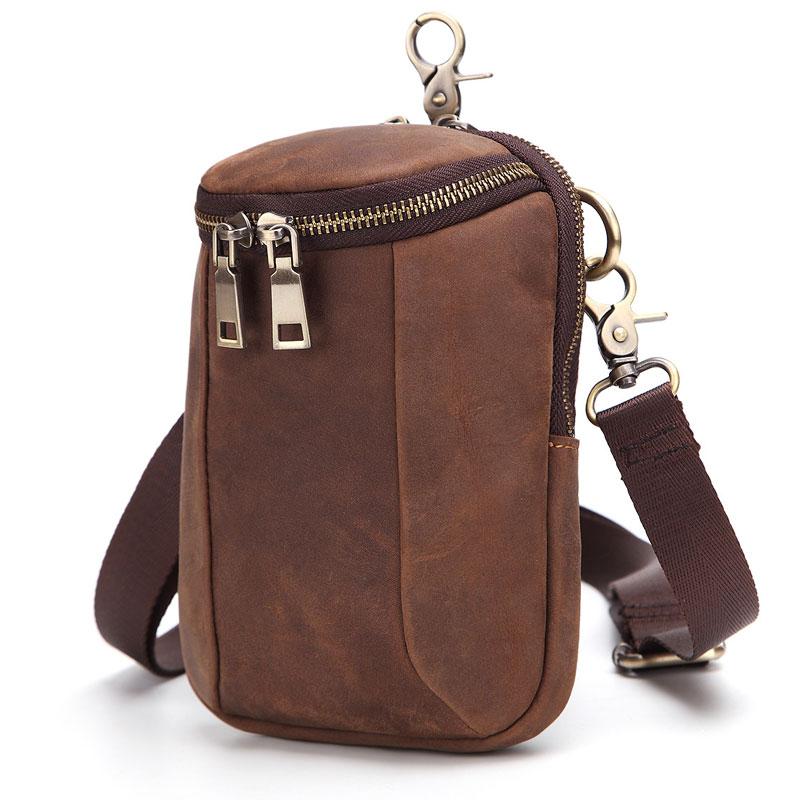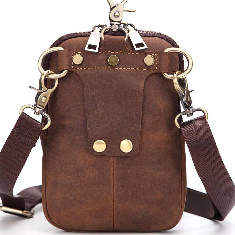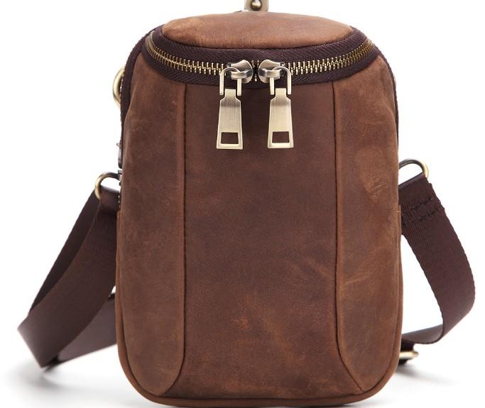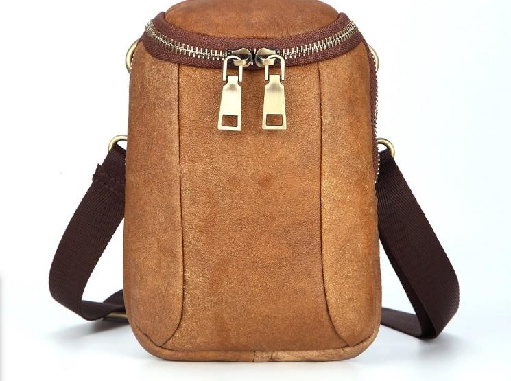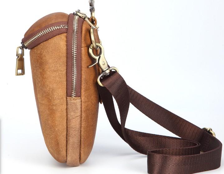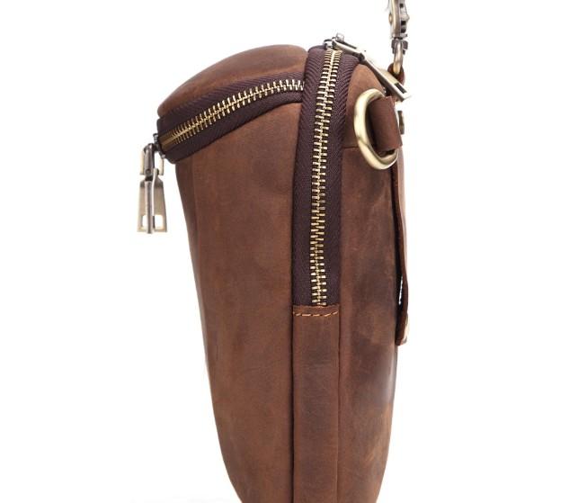 Style: Cool Brown Mens Leather One Shoulder Backpack Chest Bag Sling Bags For Men
