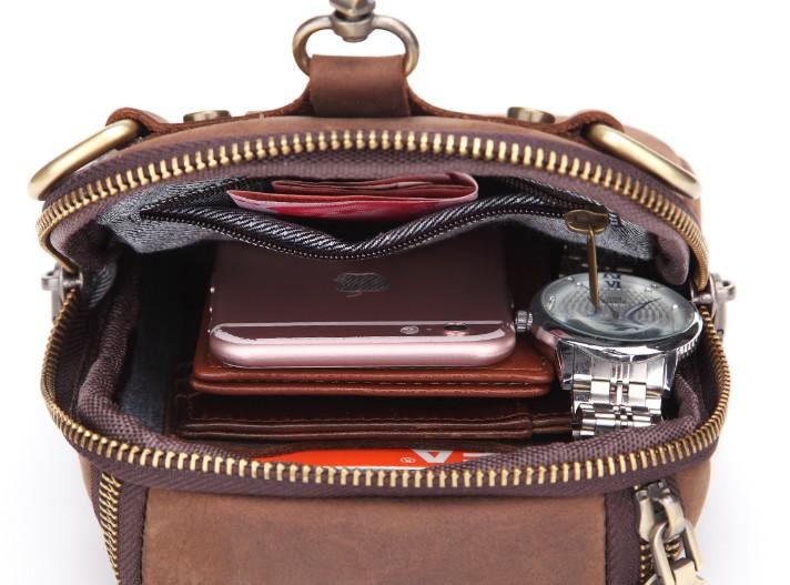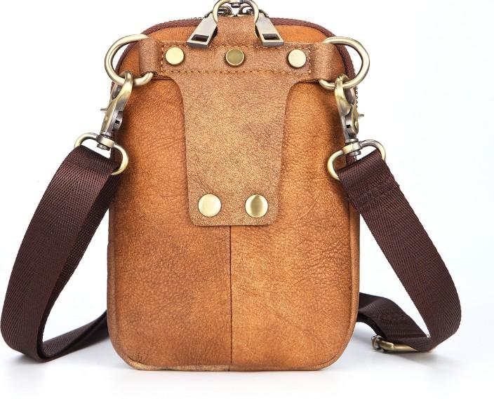 Design: Cool Brown Mens Leather One Shoulder Backpack Chest Bag Sling Bags For Men