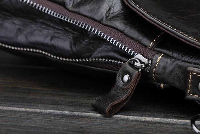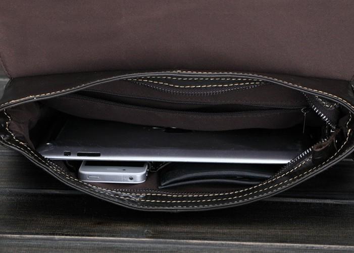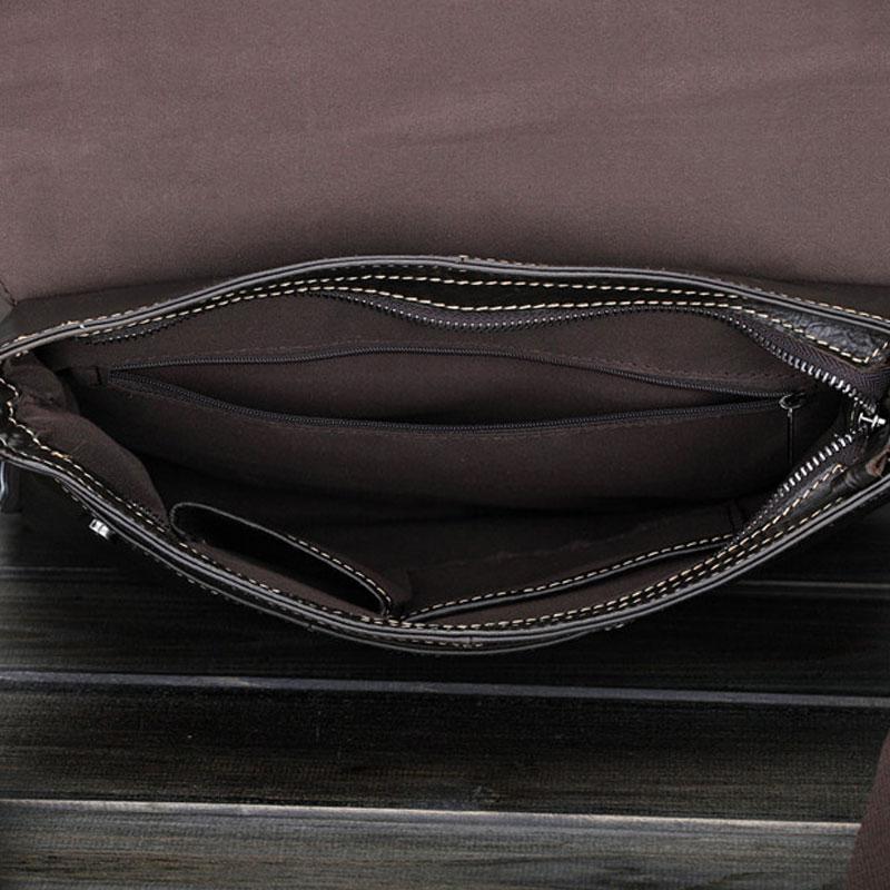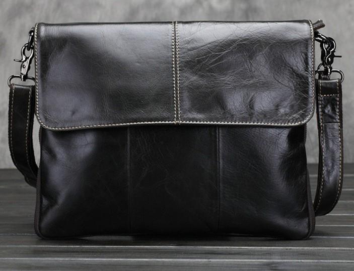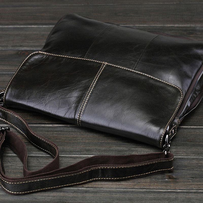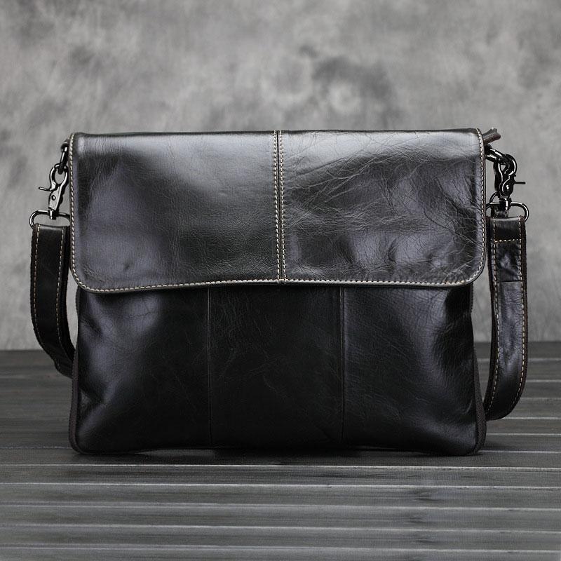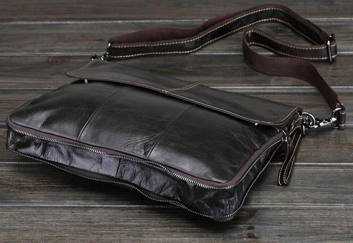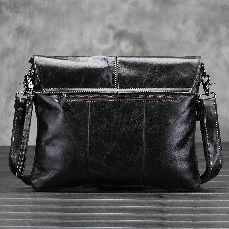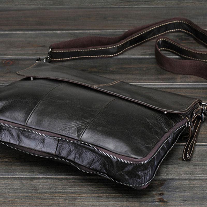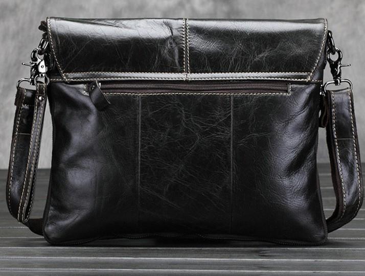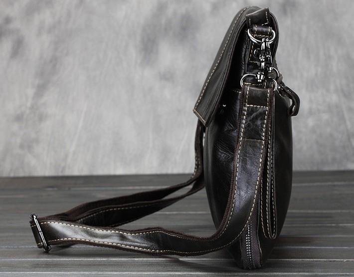 Design: Cool Black Small Leather Mens Messenger Bag Shoulder Bag for Men