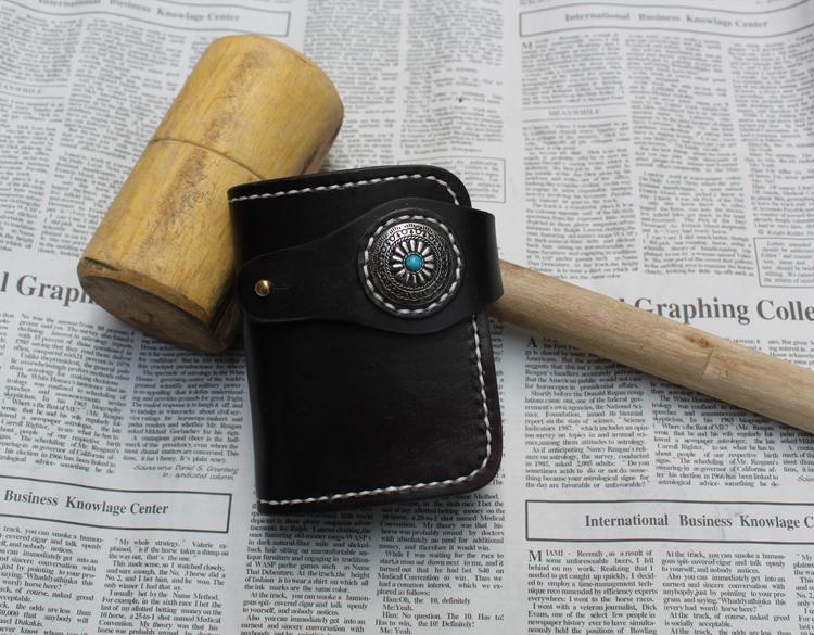 Style: Cool Leather Small Biker Chain Wallet Mens Handmade billfold Chain Wallets