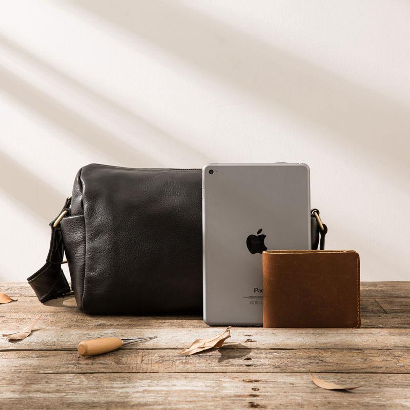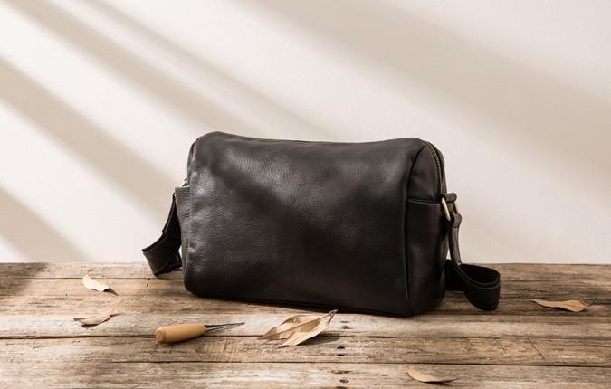 Style: Cool Small Leather Black Mens Messenger Bags Shoulder Bags for Men