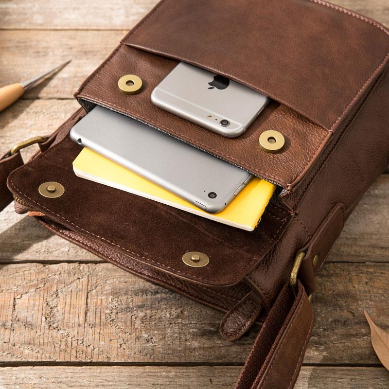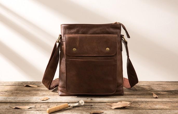 Style: Coffee Cool Leather Mens Shoulder Bags Messenger Bags for Men