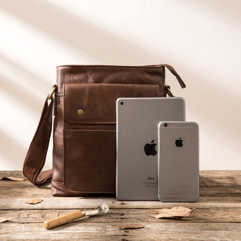 Design: Coffee Cool Leather Mens Shoulder Bags Messenger Bags for Men