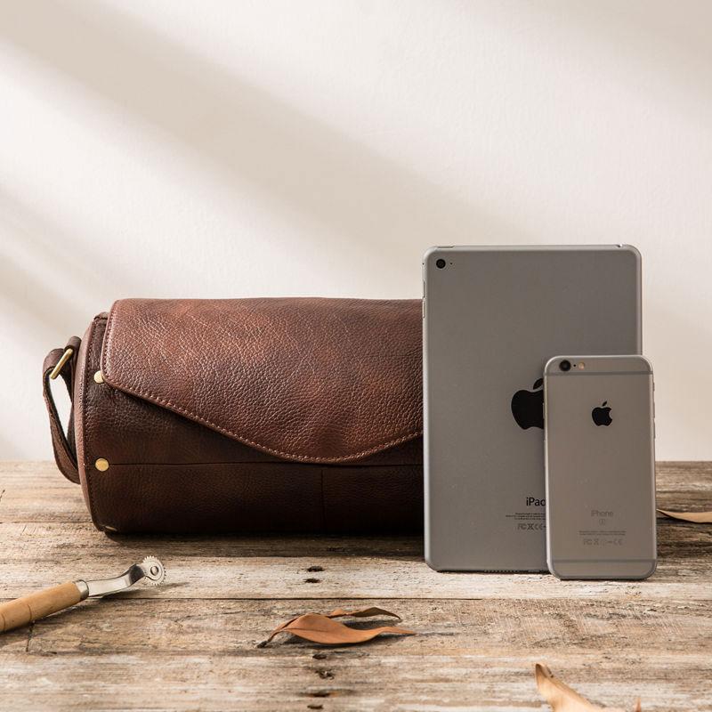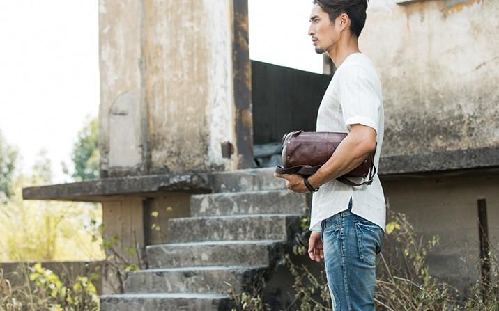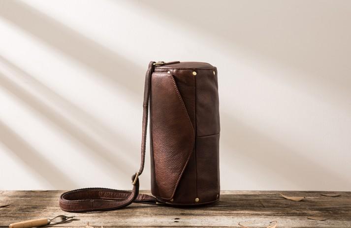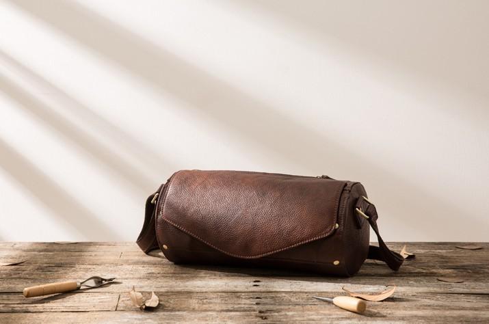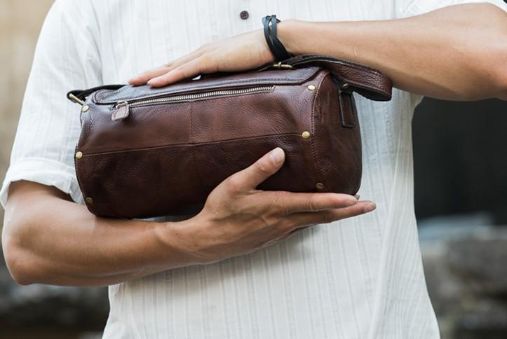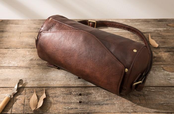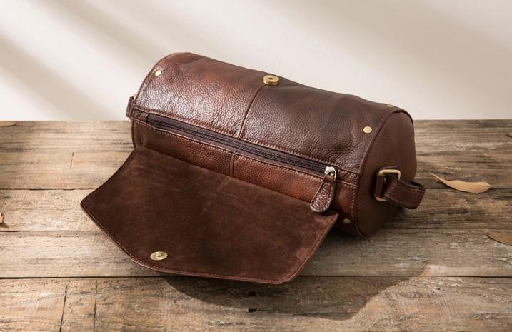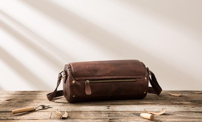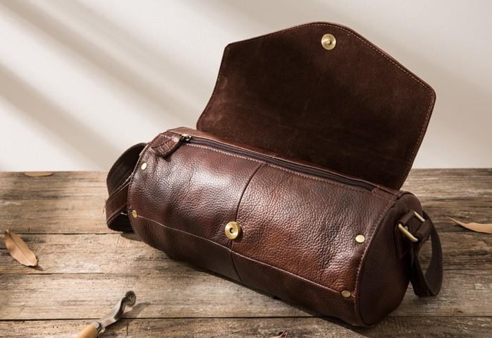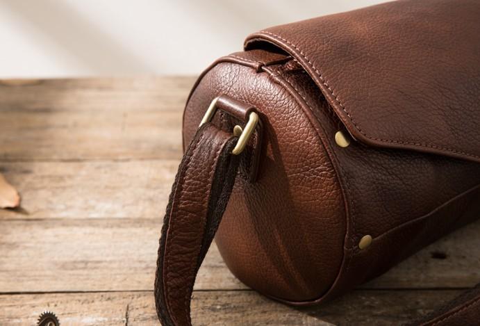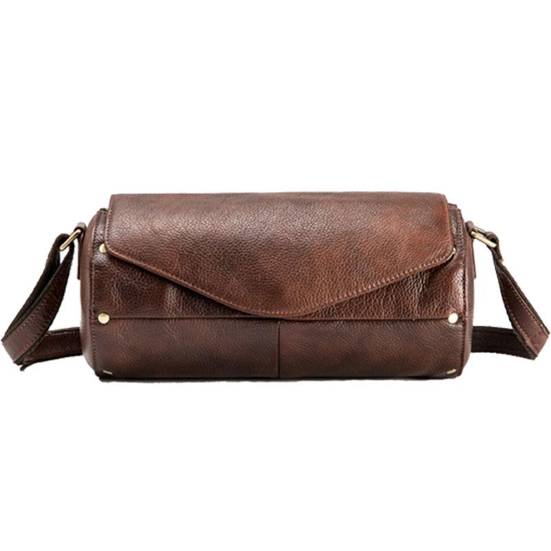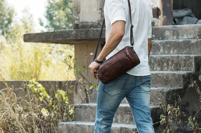 Design: Cool Small Mens Leather Barrel Bag Messenger Bags Shoulder Bags  for Men