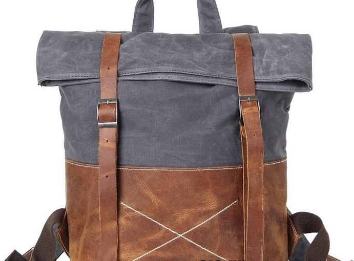 Design: Leather Canvas Mens Cool Backpack Canvas Travel Bag Canvas School Bag for Men