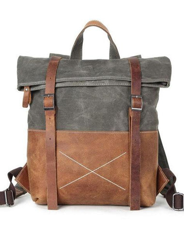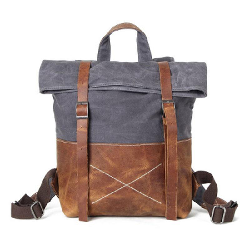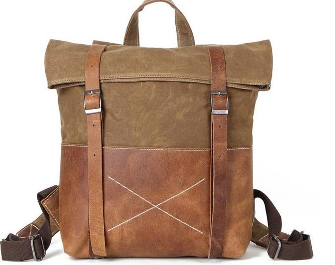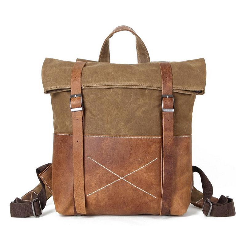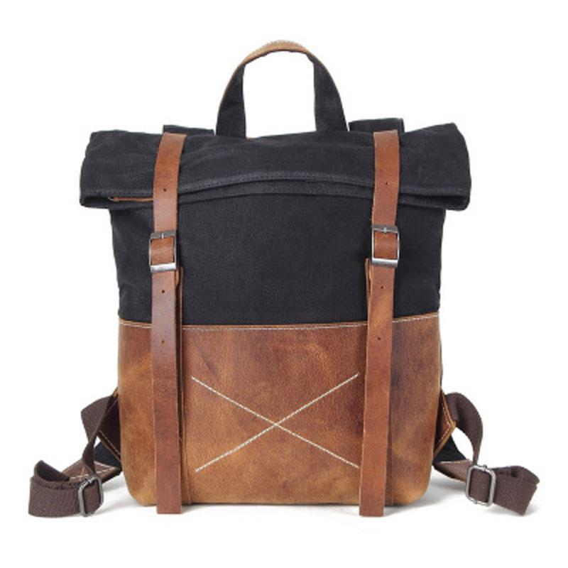 Style: Leather Canvas Mens Cool Backpack Canvas Travel Bag Canvas School Bag for Men