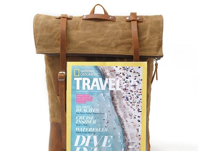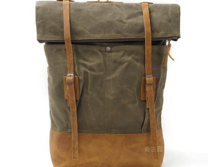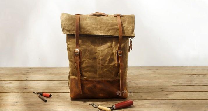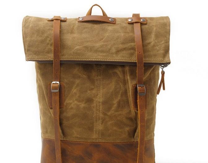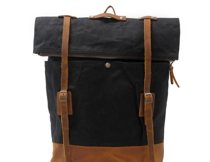 Design: Leather Canvas Mens Cool Backpack Canvas Travel Bag Canvas School Bag for Men