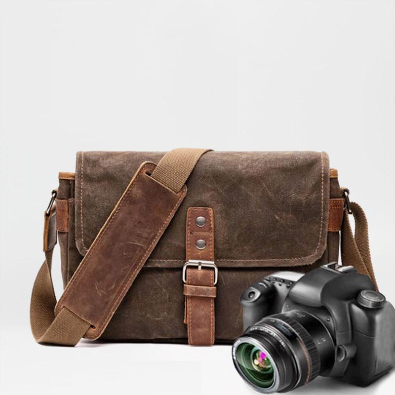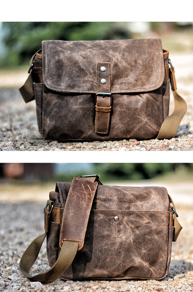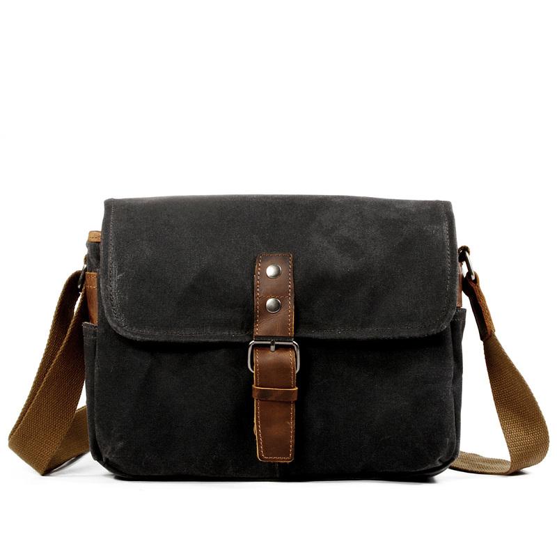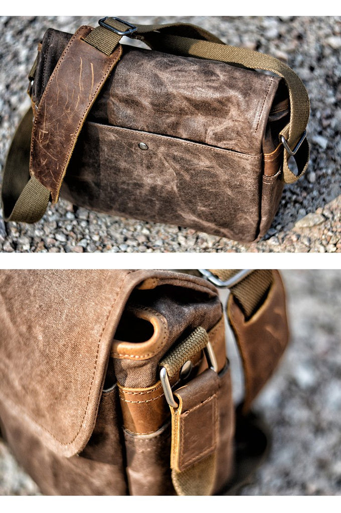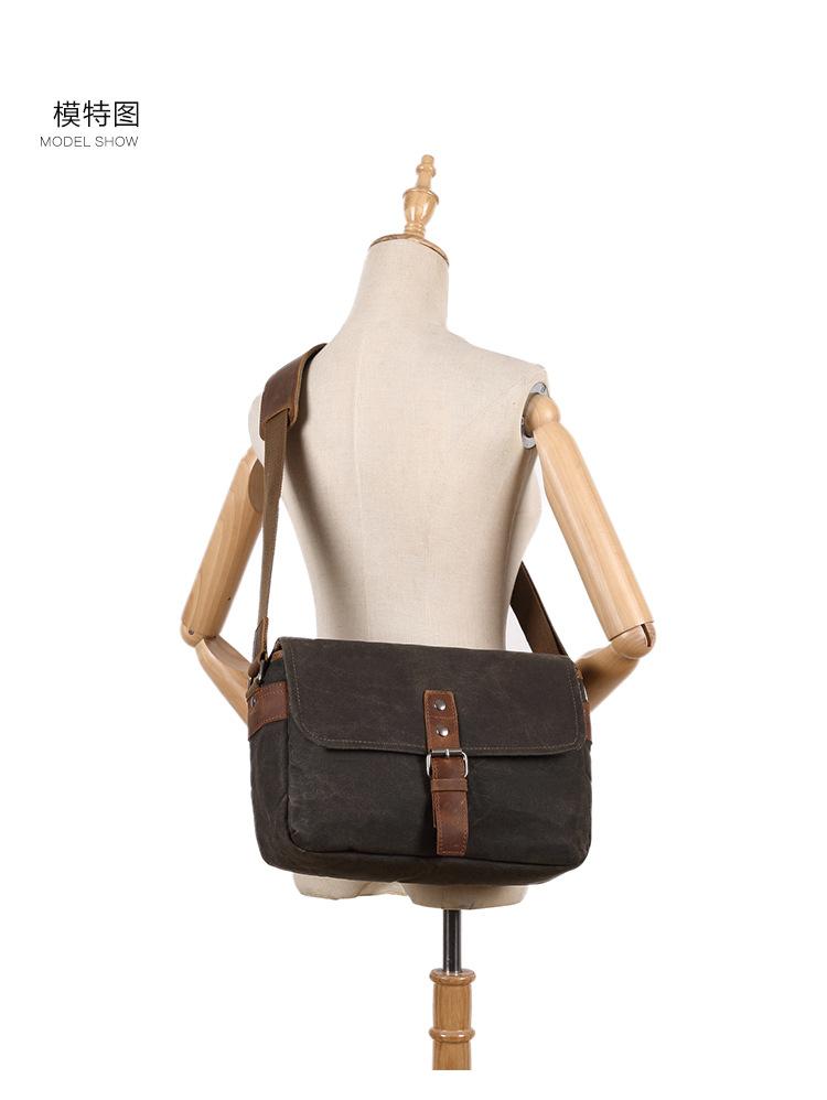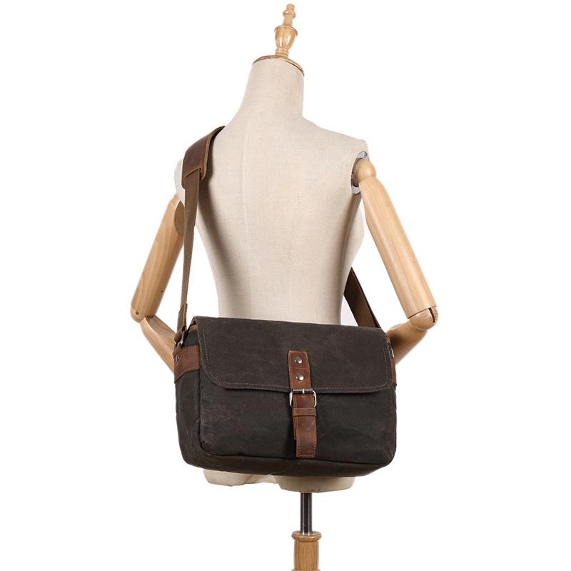 Style: Cool Waxed Canvas Leather Mens Casual Waterproof Messenger Bag Camera Bag Side Bag For Men