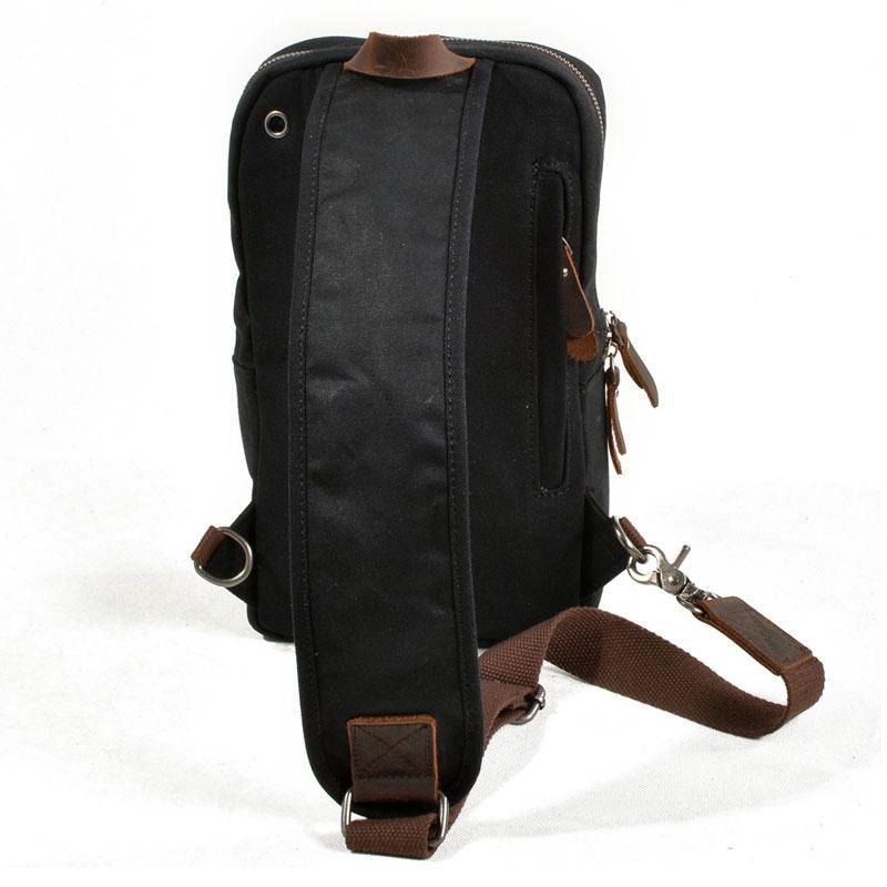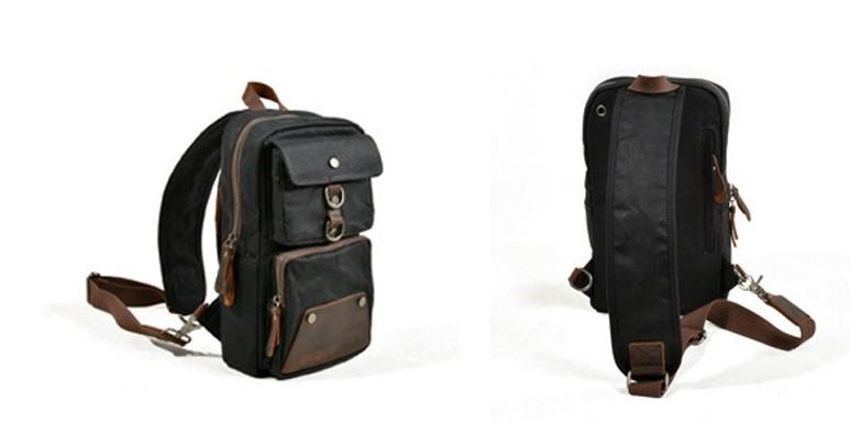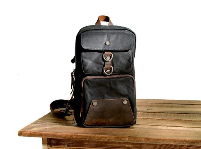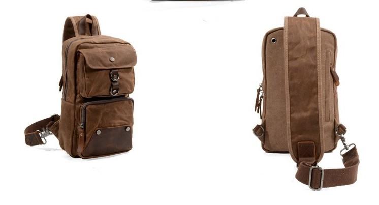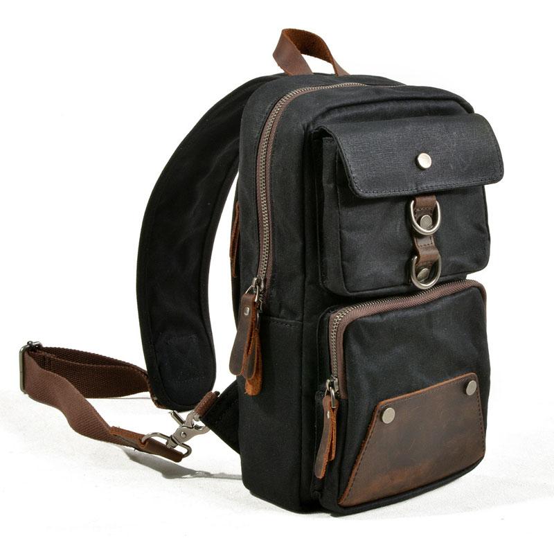 Design: Cool Waxed Canvas Leather Mens Chest Bag Sling Bag One Shoulder Packs for men