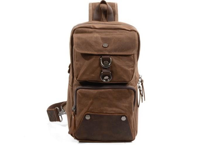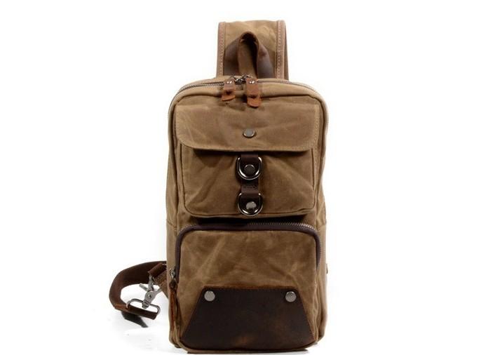 Style: Cool Waxed Canvas Leather Mens Chest Bag Sling Bag One Shoulder Packs for men