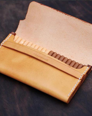 Style: Cool Wooden Slim Leather Mens 20pcs Cigarette Case Custom Beige Cigarette Holder for Men