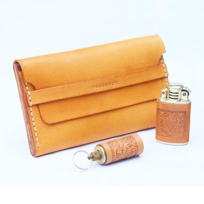 Design: Cool Wooden Slim Leather Mens 20pcs Cigarette Case Custom Beige Cigarette Holder for Men