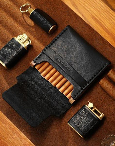 Style: Cool Wooden Black Leather Mens Cigarette Case Custom Cigarette Holder for Men