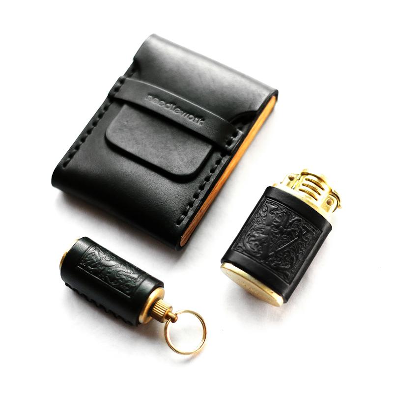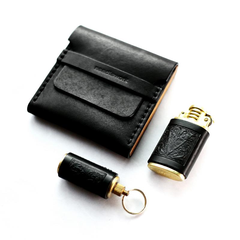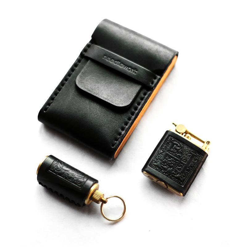 Design: Cool Wooden Black Leather Mens Cigarette Case Custom Cigarette Holder for Men