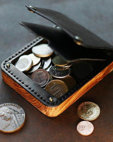 Style: Cool Wooden Leather Mens Wallet Small Card Holder Coin Wallet for Men