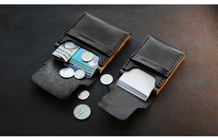 Design: Cool Wooden Leather Mens Wallet Small Card Holder Coin Wallet for Men