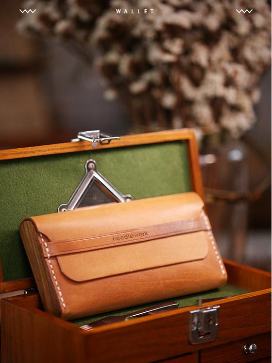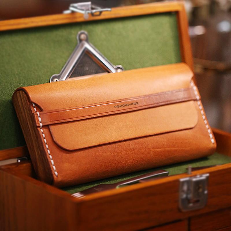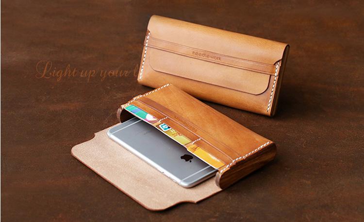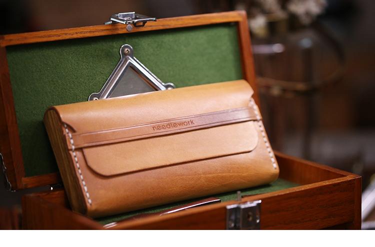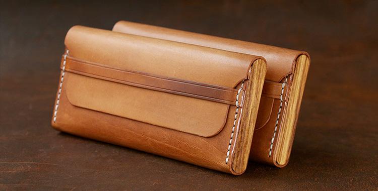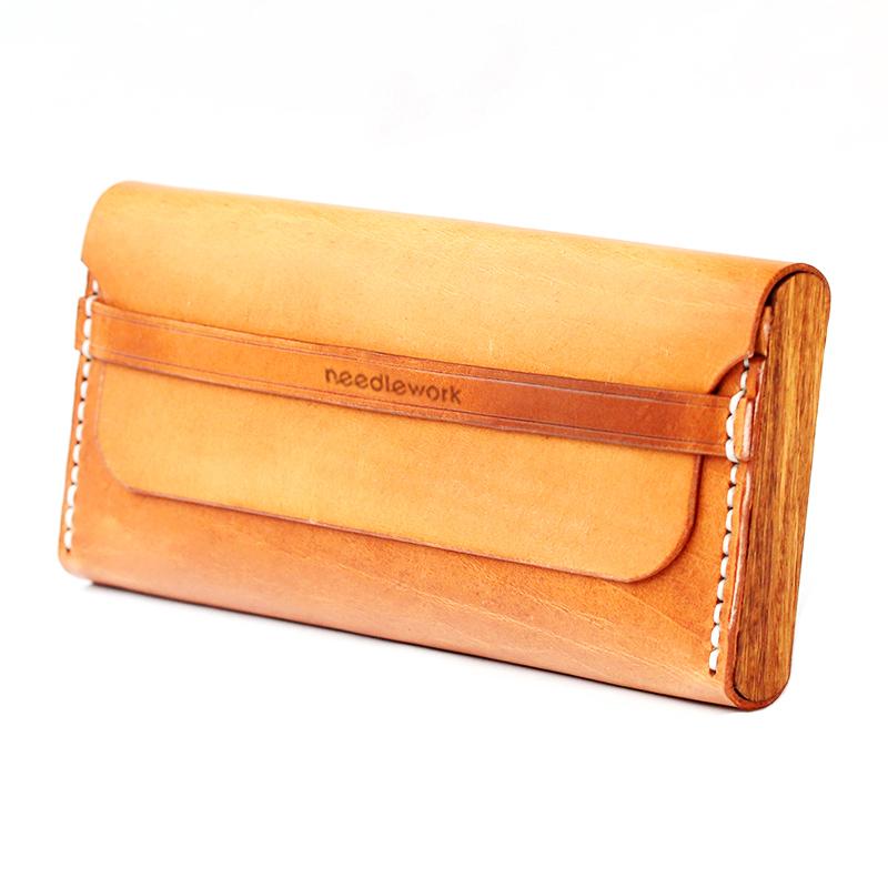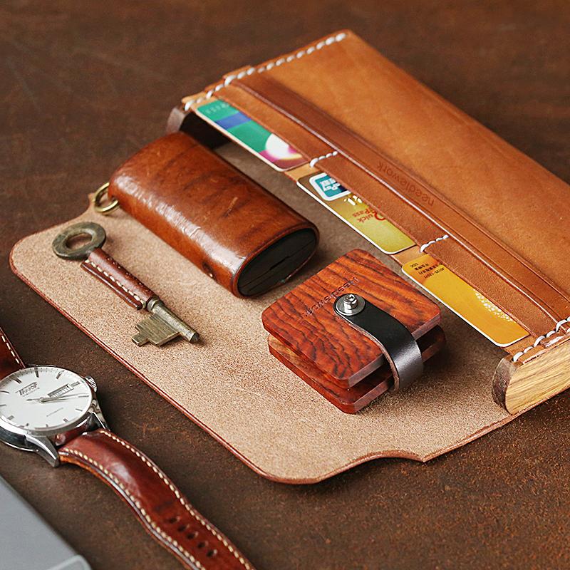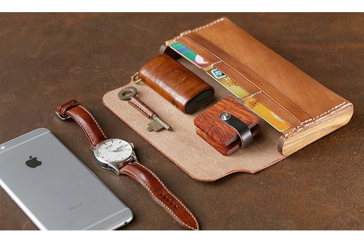 Design: Cool Wooden Brown Leather Mens Long Wallet Brown Long Wallet for Men