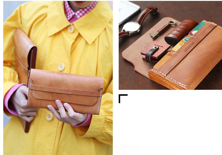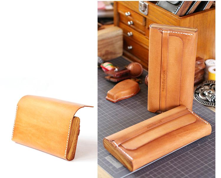 Style: Cool Wooden Brown Leather Mens Long Wallet Brown Long Wallet for Men