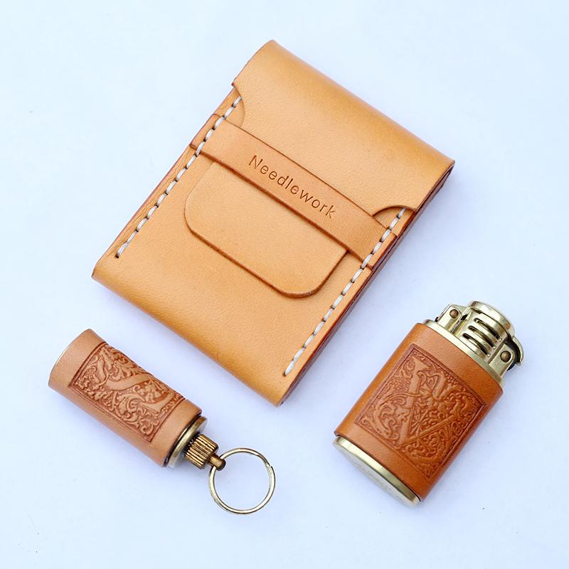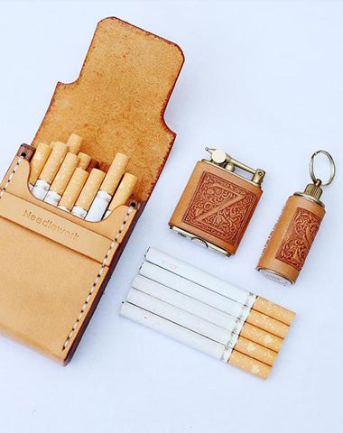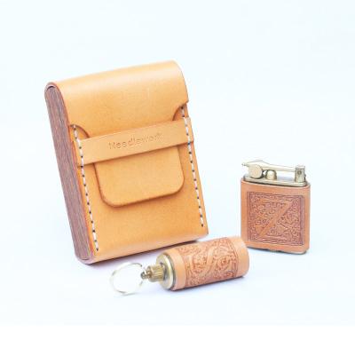 Design: Cool Wooden Beige Leather Mens 20pcs Cigarette Case Custom Cigarette Holder for Men