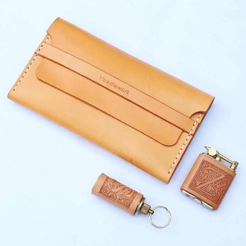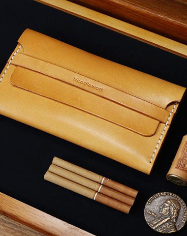 Style: Cool Wooden Slim Leather Mens 20pcs Cigarette Case Custom Beige Cigarette Holder for Men