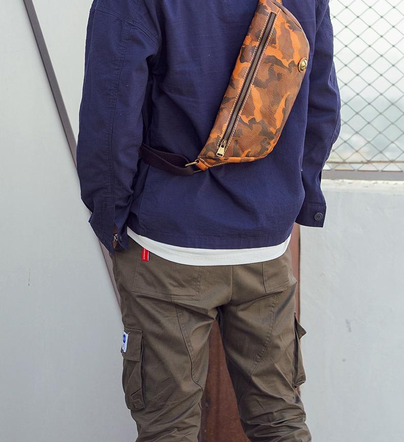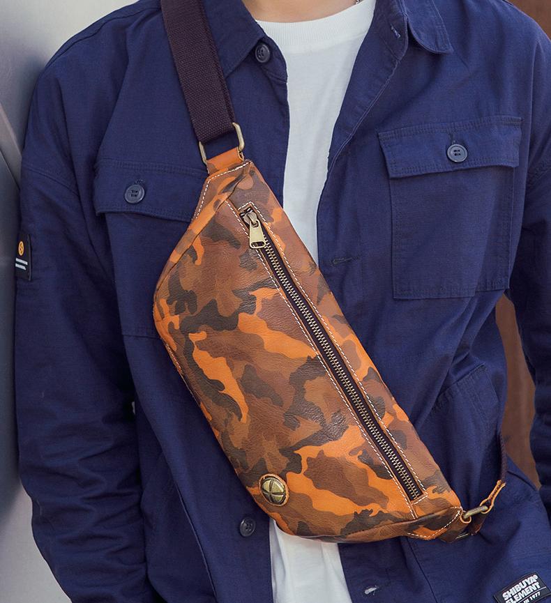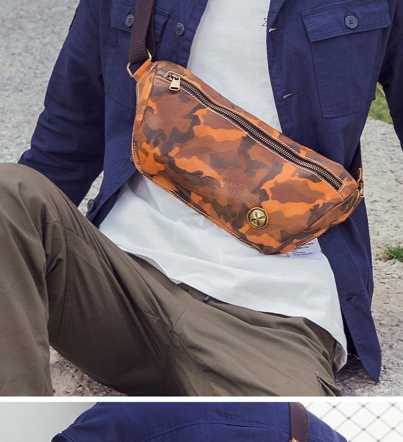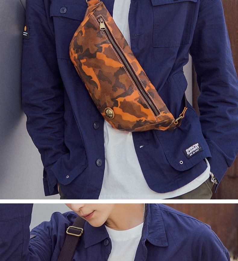 Style: Badass Leather Fanny Pack Men's Yellow Camouflage Chest Bag Hip Bag Waist Bag For Men