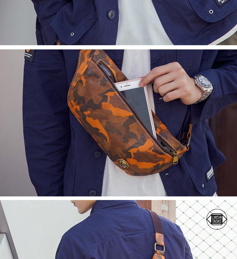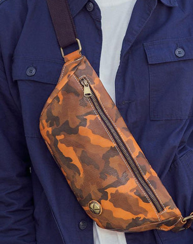 Design: Badass Leather Fanny Pack Men's Yellow Camouflage Chest Bag Hip Bag Waist Bag For Men