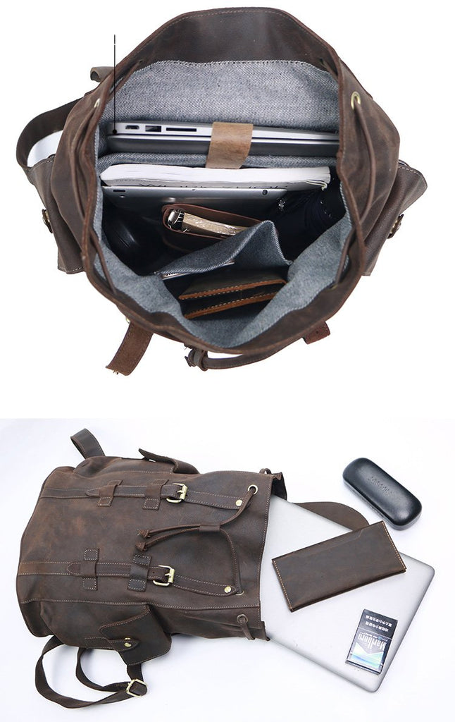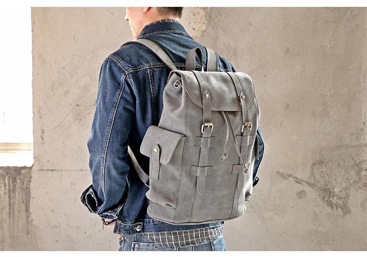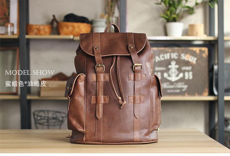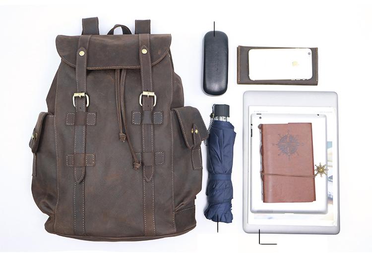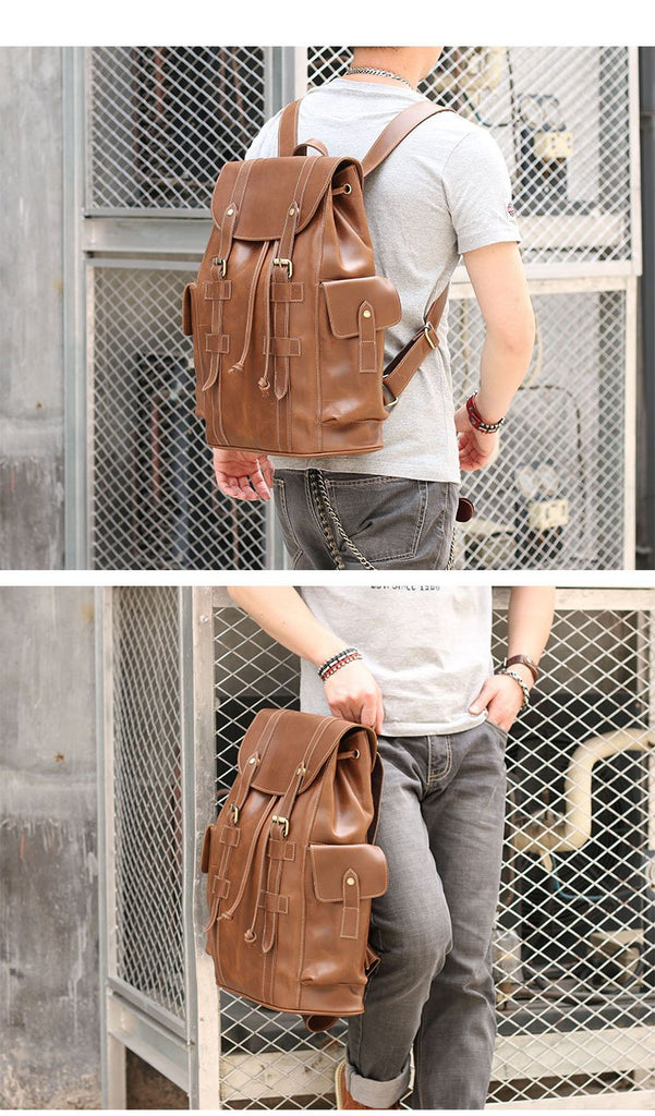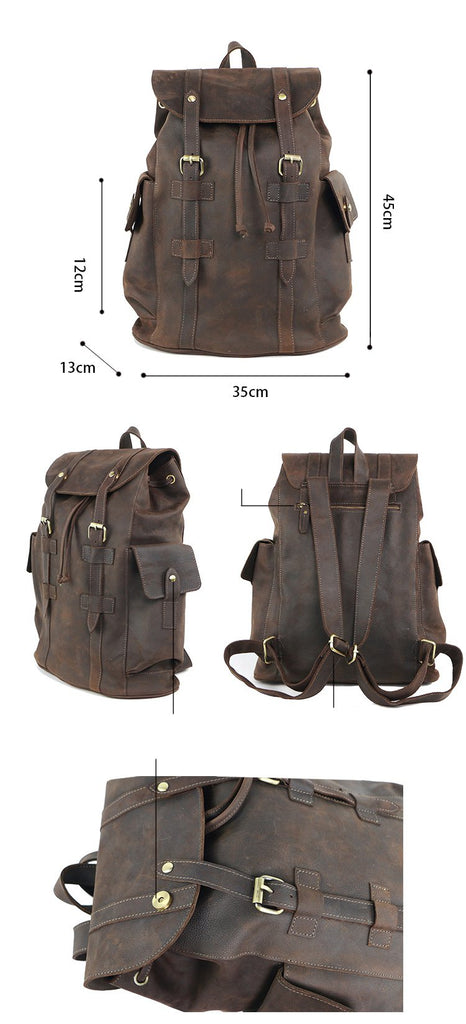 Style: Copy of Cool Black Leather Mens Travel Backpack Work Handbag 16 inches Work Backpack For Men