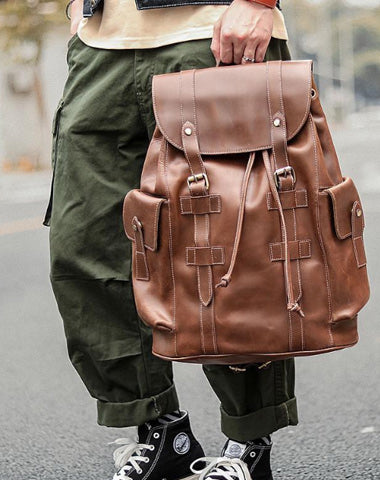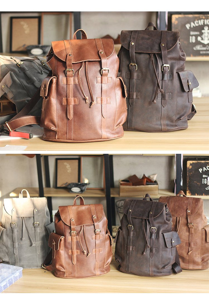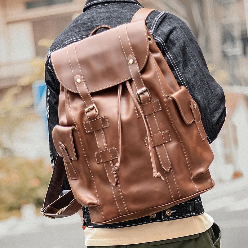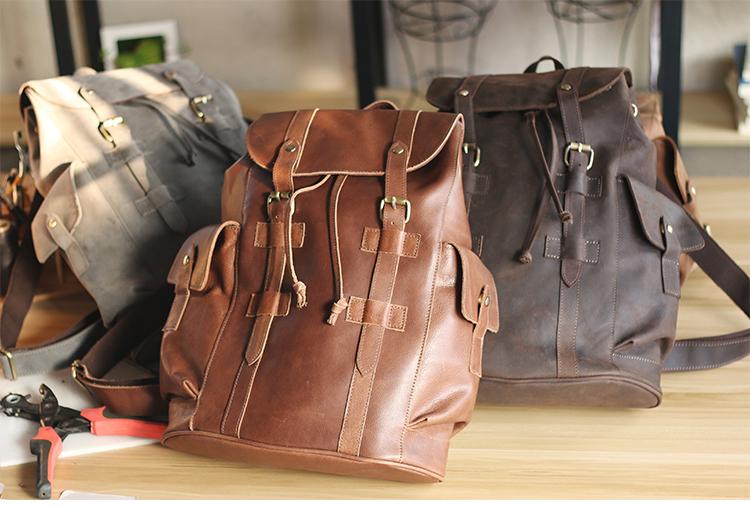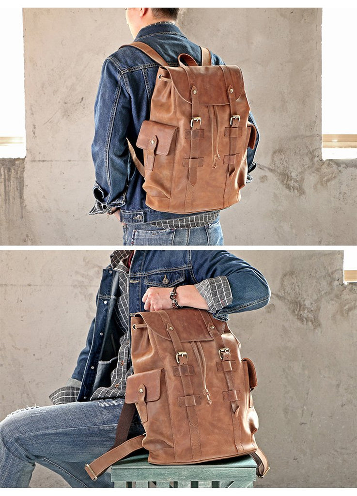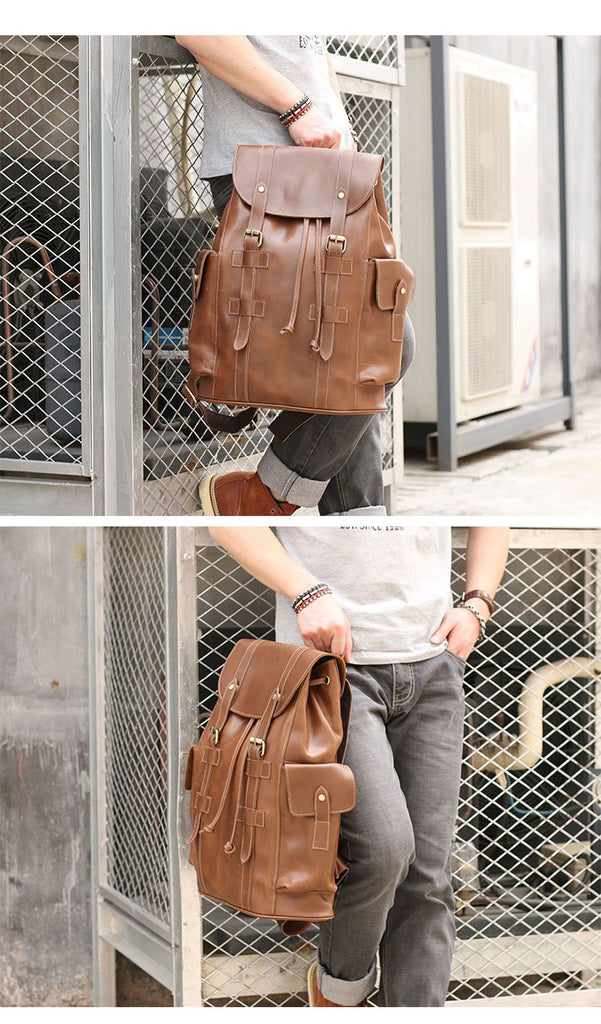 Style: Copy of Cool Black Leather Mens Travel Backpack Work Handbag 16 inches Work Backpack For Men