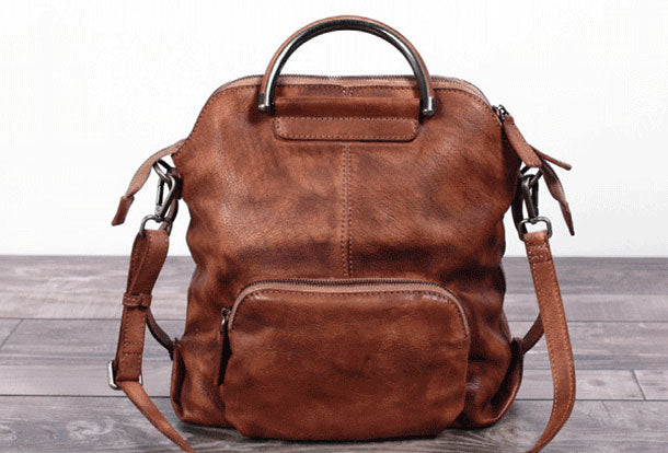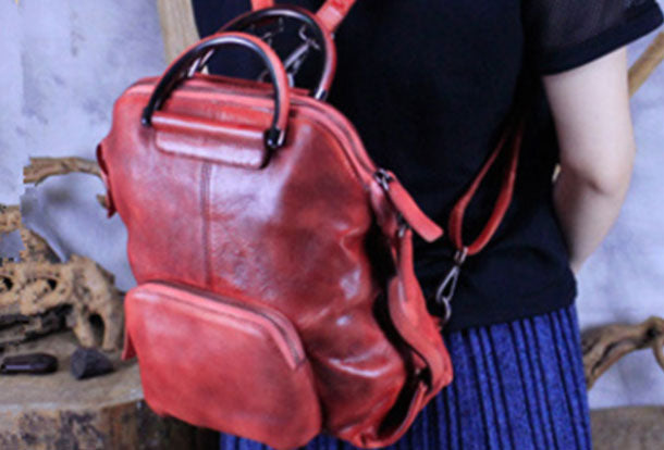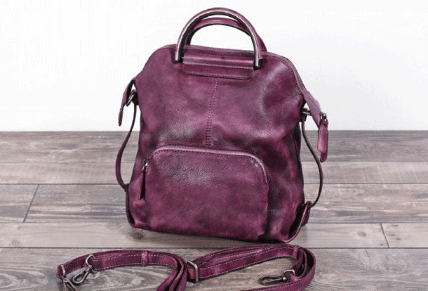 Design: Genuine Handmade Vintage Leather Backpack Bag Shoulder Bag Women Leather Purse
