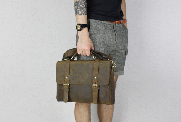 Design: Coffee Vintage Briefcase Messenger bag For Men