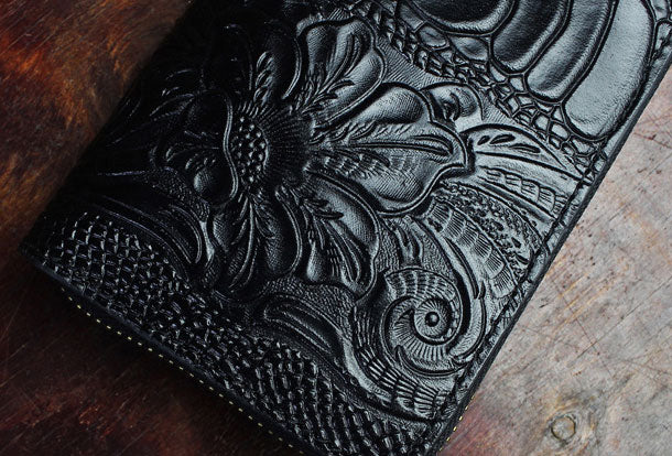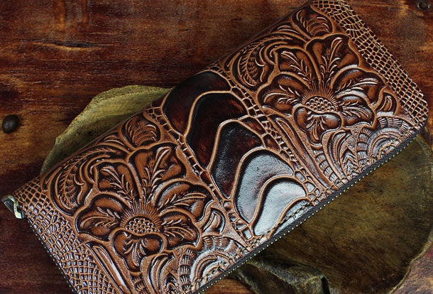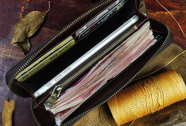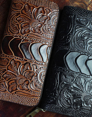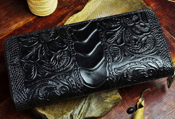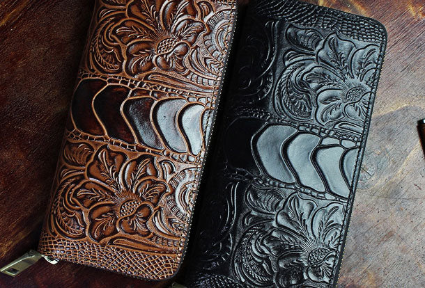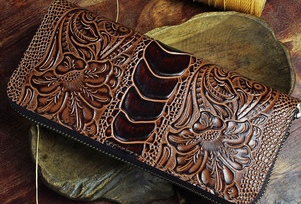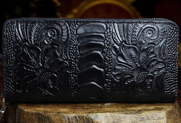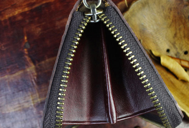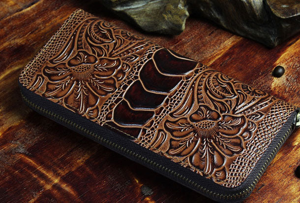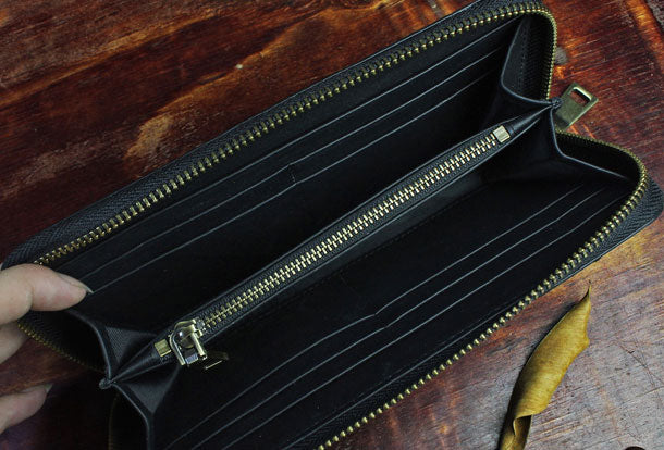 Design: Handmade Long Leather Wallet Alligator Bifold Leather Zip Clutch Wallet For Men Women