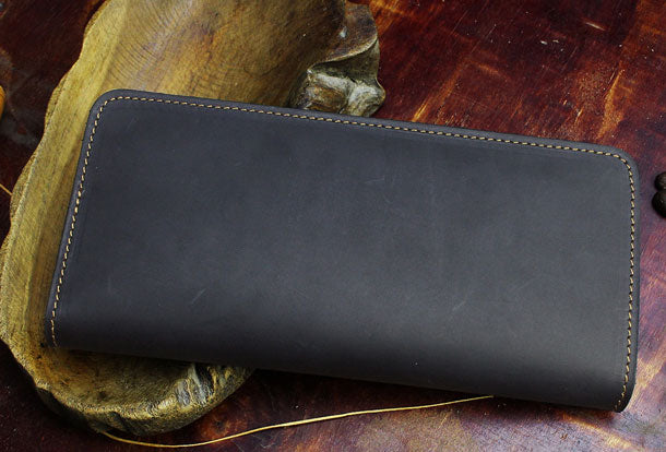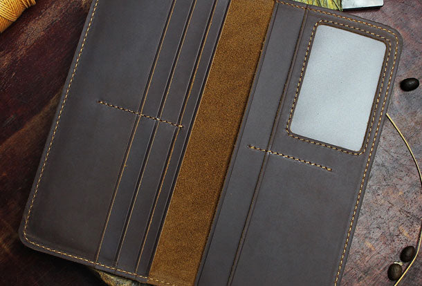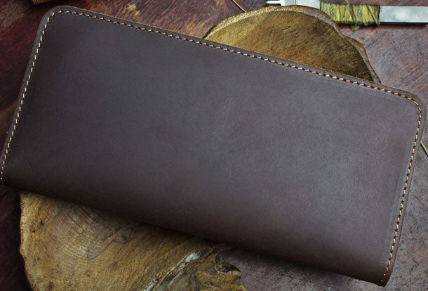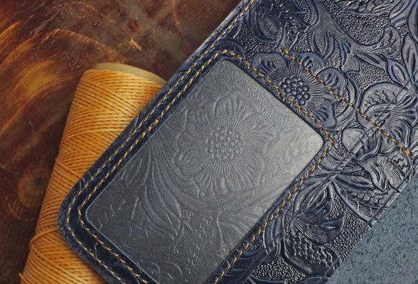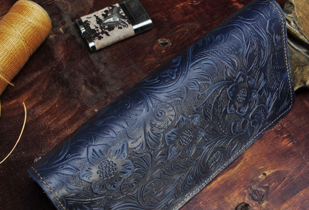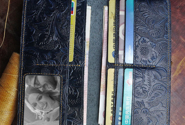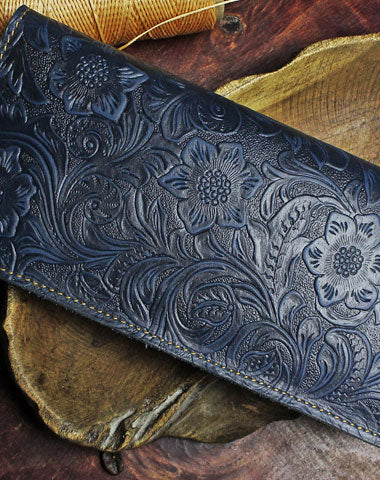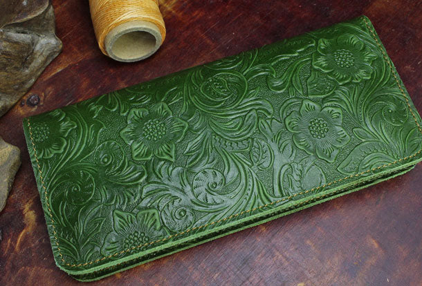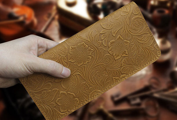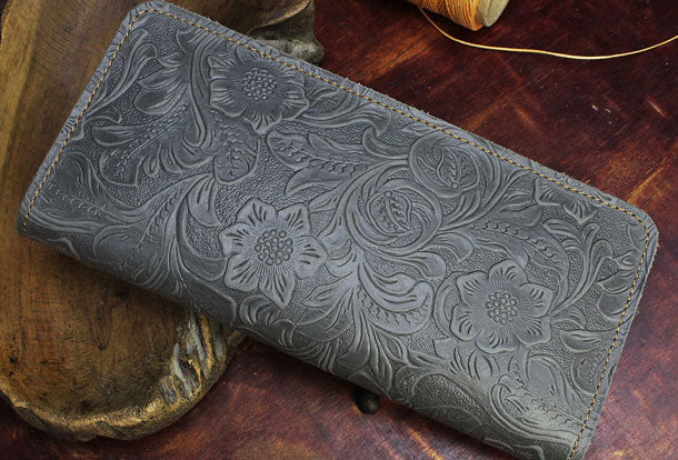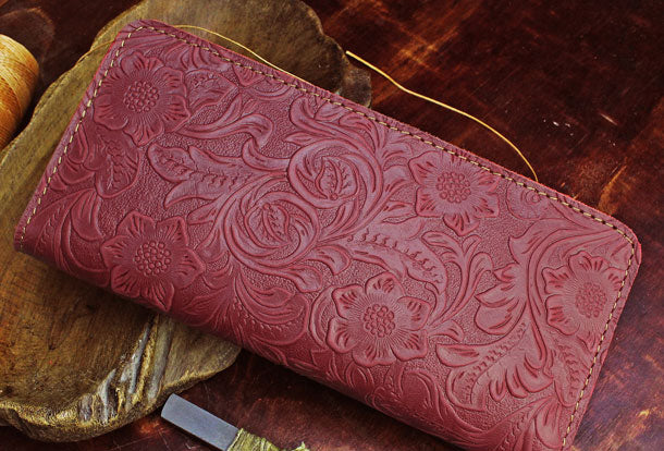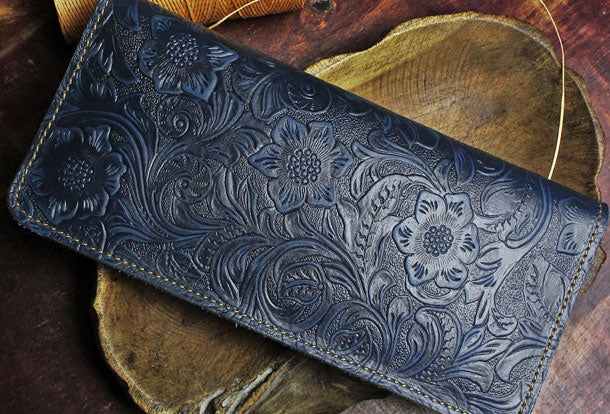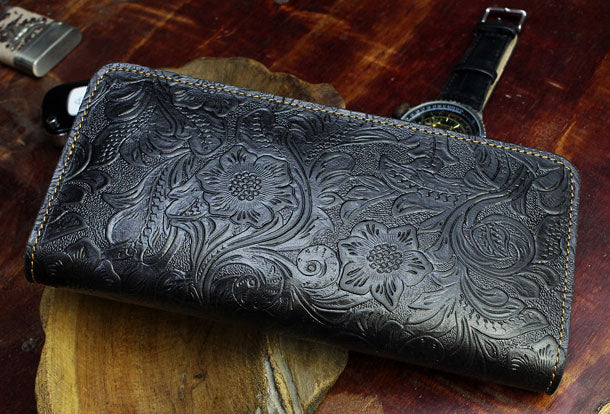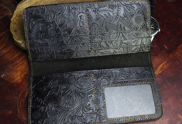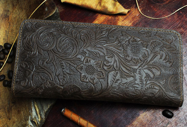 Design: Handmade Long Leather Wallet Floral Bifold Leather Purse Wallet Clutch For Men Women