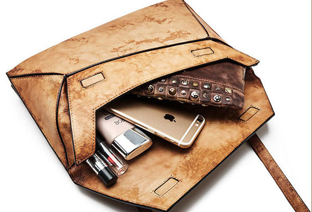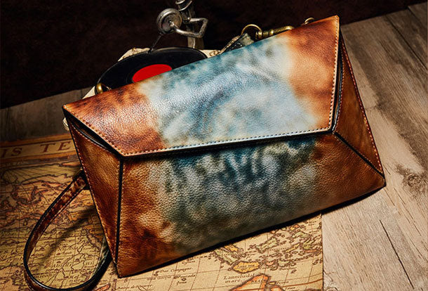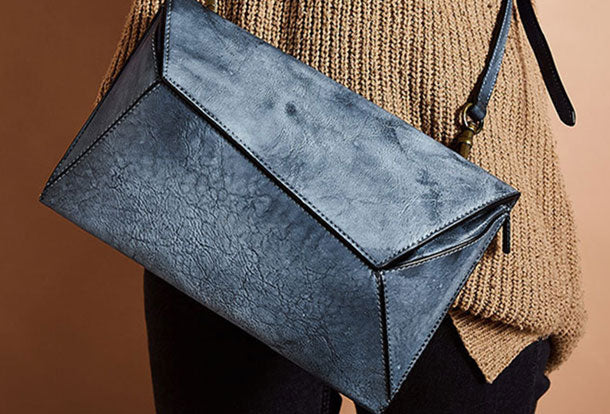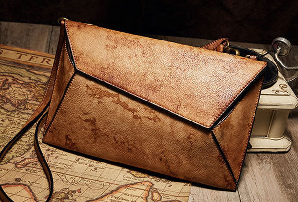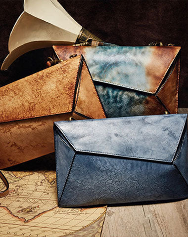 Design: Handmade Vintage Leather Handbag Geometirc Envelope Crossbody Bag Shoulder bag Leather Clutch Wallet For Women