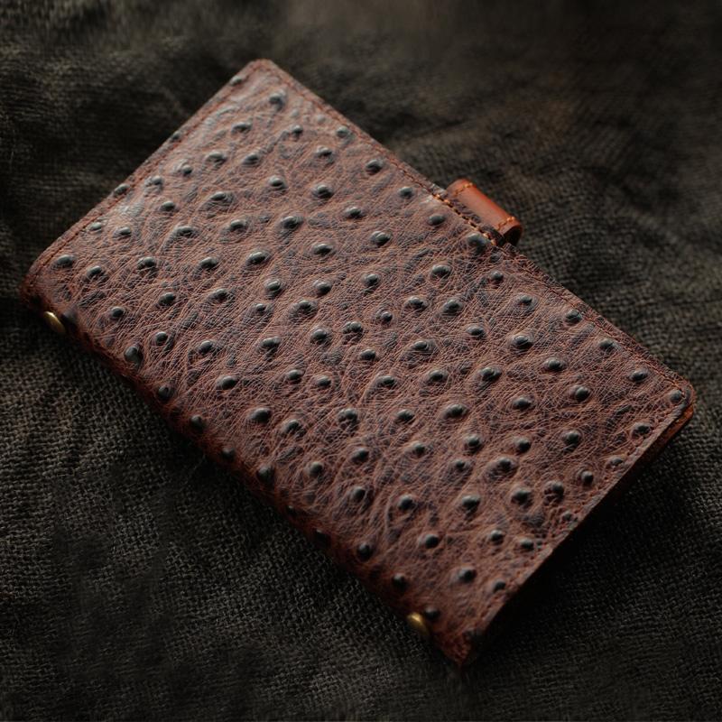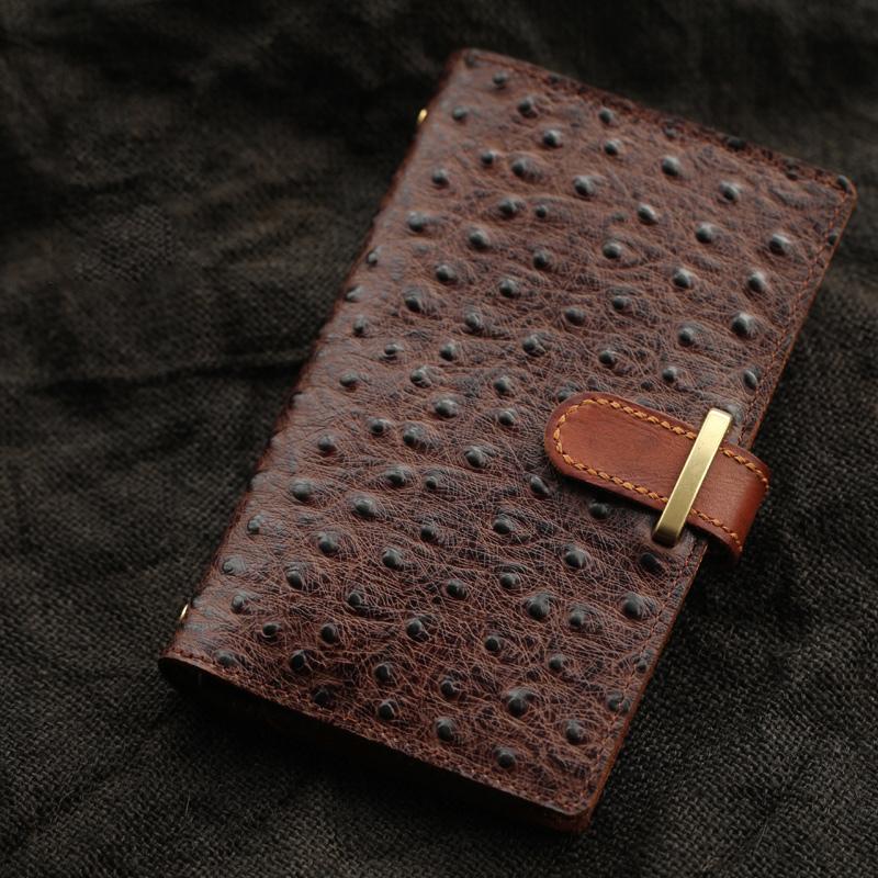 Design: Creative Handmade Ostrich Pattern Leather A6 Travel Notepad Brown Notebook For Men