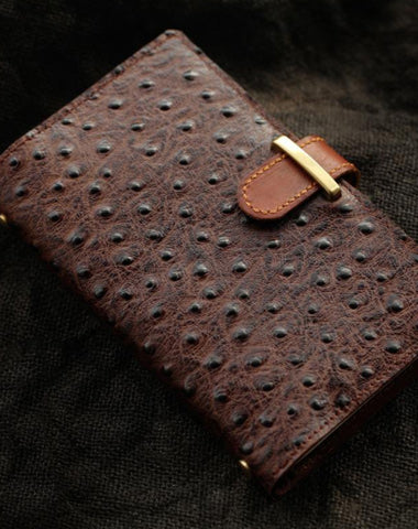 Style: Creative Handmade Ostrich Pattern Leather A6 Travel Notepad Brown Notebook For Men
