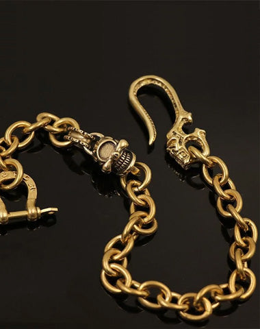 Badass Gold Mens Brass Wallet Chain Pants Chain Skull Biker Wallet CHain For Men