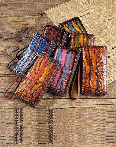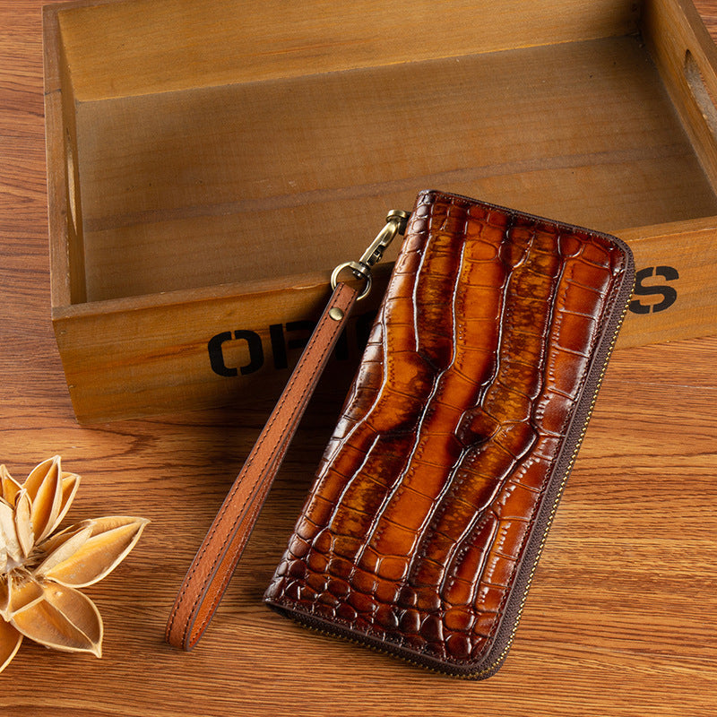 Design: Crocodile Pattern Leather Wristlet Wallet Womens Zip Around Wallets CONTRAST COLOR Ladies Zipper Clutch Wallets for Women